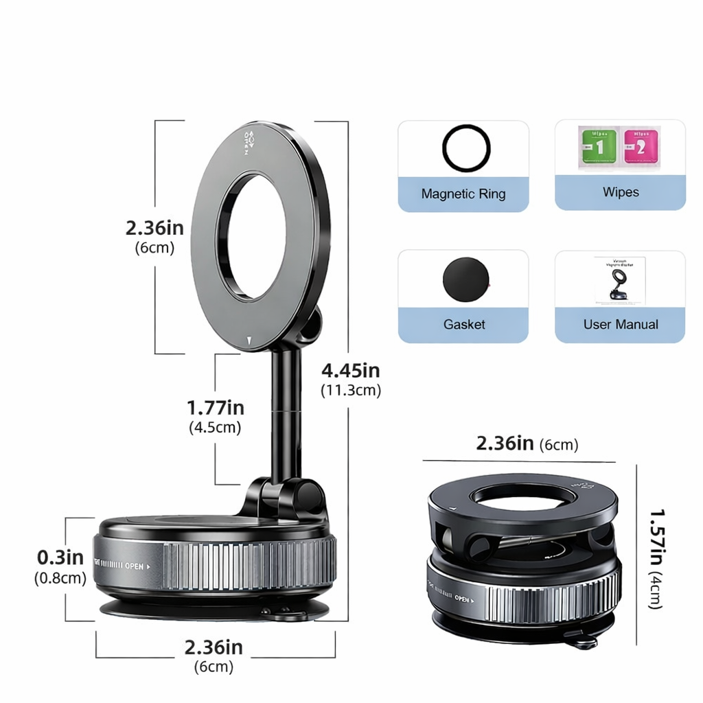 Say goodbye to clunky clamps and falling phones. Experience the 1-second magnetic snap
